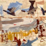 Baser became a known name in the Israeli art, together with Nahum Guttmann and Shimshon Holtzman. However, while Holtzman experienced difficulties to abandon the shapes, Guttmann’s sense of humor entered his paintings and made them seem as stories. Baser paintings were pure in compare to that; the brush, the color, the paper and nothing but the knowledge how to apply the color. It was as though no one could have expressed the sea and the Mediterranean climate better than Robert Baser.