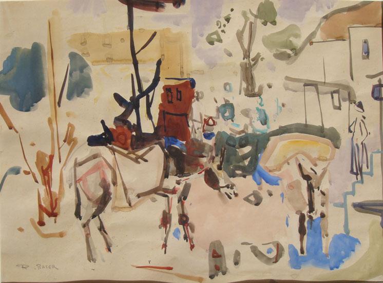 In her book, “Robert Baser – Water Colors”, Gila Blas writes: “if there was ever a doubt about the existence of Middle Eastern painting, then Robert Baser’s work eliminates this doubt. From Athens, where he was born, this young man arrived to Palestine, a different shore in the same see, and so when his painters’ friends came from Europe and were shocked by the Middle Easter sun, Baser felt at home with this familiar climate”.