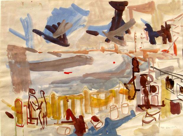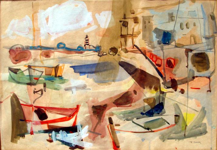 Baser became a known name in the Israeli art, together with Nahum Guttmann and Shimshon Holtzman. However, while Holtzman experienced difficulties to abandon the shapes, Guttmann’s sense of humor entered his paintings and made them seem as stories. Baser paintings were pure in compare to that; the brush, the color, the paper and nothing but the knowledge how to apply the color. It was as though no one could have expressed the sea and the Mediterranean climate better than Robert Baser.
